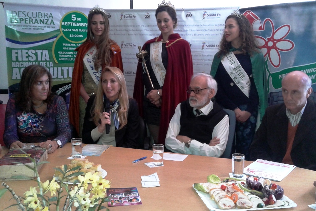 Personal técnico del Área de Turismo de la Municipalidad de Esperanza, acompañados por la Reina Nacional de la Agricultura 2014 Gisel Anahi Lofiego, compartieron con los presentes diferentes aspectos del extenso Programa de actividades de la tradicional fiesta que se realizará este próximo fin de semana (5, 6, 7, y 8 de septiembre) en la ciudad cabecera del Departamento Las Colonias.