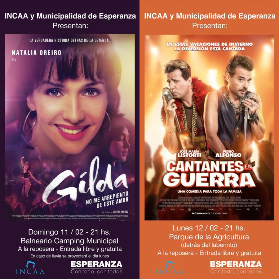 La primera el domingo 11 de febrero en el Balneario Camping Municipal, allí se exhibirá “Gilda” y lunes 12 en el Parque de la Agricultura, espacio en el que podrá verse “Cantantes en Guerra”.