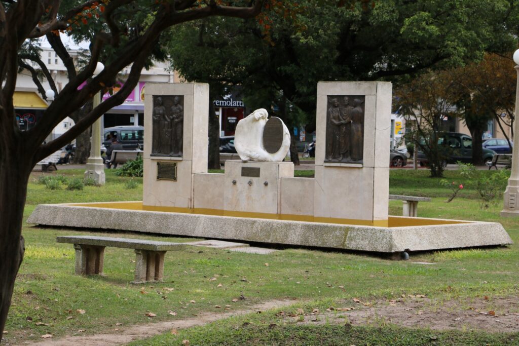 Emplazado en el ingreso de Av. Córdoba y Sarmiento, fue inaugurado el 11 de Octubre de 1959. Figura femenina sedente que descansa sobre un elevado pedestal cuadrangular, de formas esbeltas