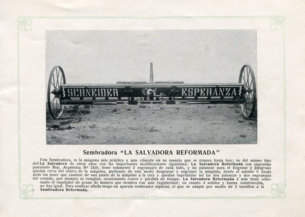 A mí también me fabricaron aquí, a mediados del siglo veinte, período en el que Argentina se mostraba como pionera mundial en el desarrollo de la maquinaria agrícola, por eso es que soy toda de hierro y chapa, mis antecesoras que se empezaron a fabricar en la fábrica Schneider allá por 1880, eran de hierro y madera.