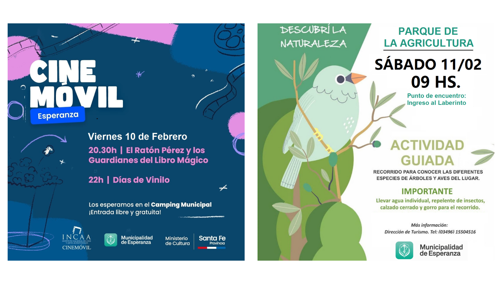 La Municipalidad de Esperanza en forma conjunta con el Ministerio de Cultura de Santa Fe, la Secretaria de Industrias Creativas y el INCAA (Instituto Nacional de Cine y Artes Audiovisuales), invitan a la comunidad esperancina y de la región a disfrutar de una jornada de cine el día viernes 10/02, en el Camping Municipal.