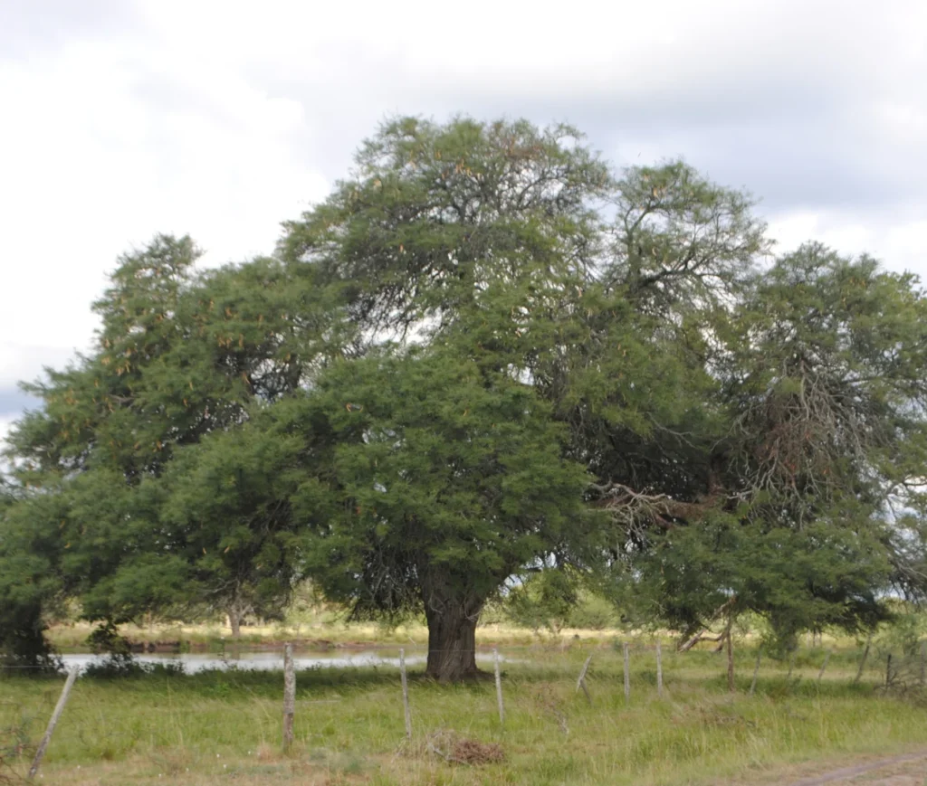 Algarrobo blanco (Neltuma alba): es el árbol más característico de estos ambientes. Muy longevo, cuando alcanza gran tamaño, puede tener cientos de años. Llamado “El Árbol” por los pueblos originarios del centro y norte argentino. Lo consideraban sagrado por todos los beneficios que recibían de él (sombra, abrigo, medicina, forraje, madera, leña, tintura y alimento). Sus frutos, las algarrobas, ricos en nutrientes, son un valioso alimento ancestral. Se relaciona con muchos animales y en su copa anidan diversas aves.