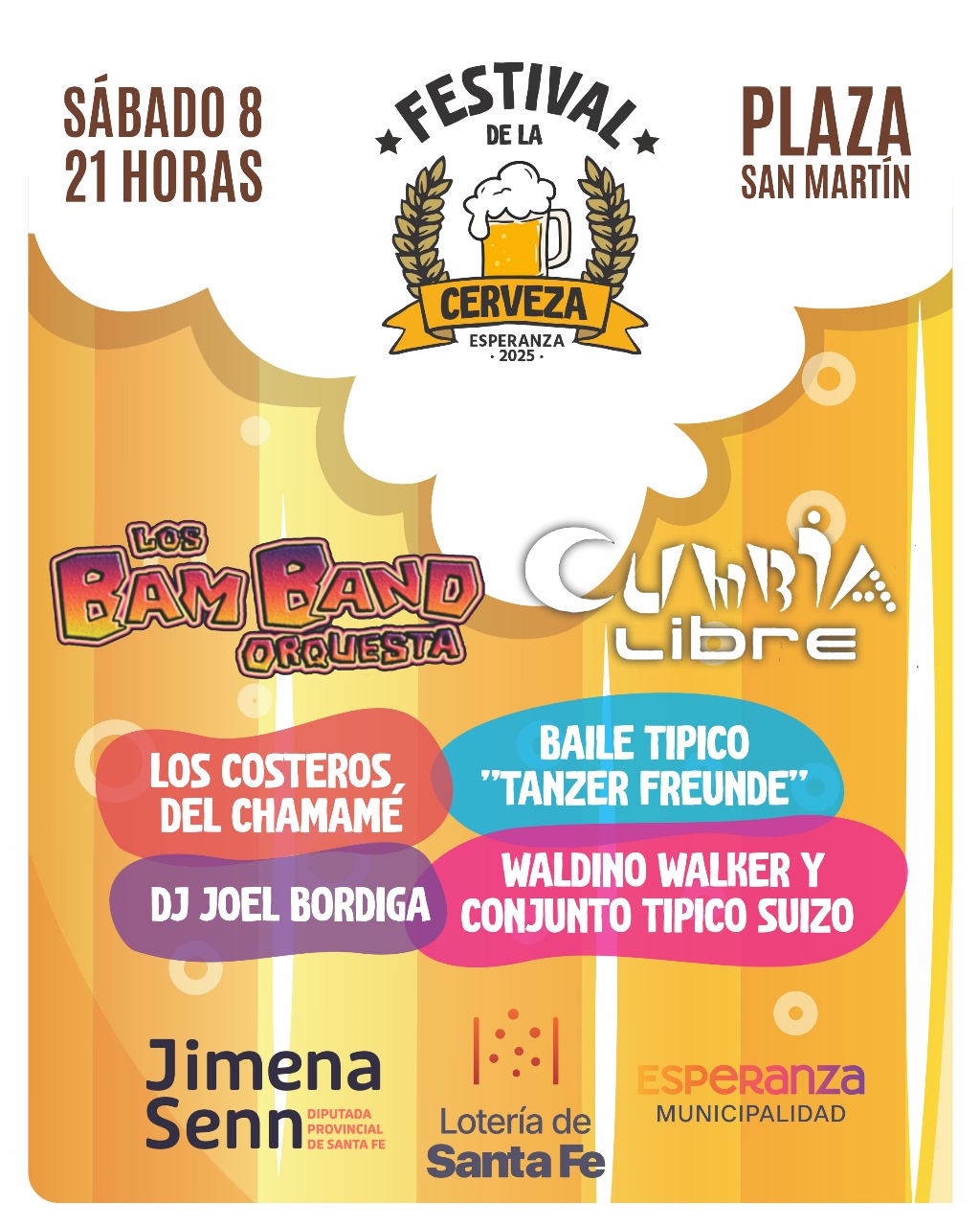 Música en vivo: Los Bam Band Orquesta; Cumbia Libre; Los Costeros del Chamame; Baile Típico Tanzer Freunde; Waldino Walker y Conjunto Tipico Suizo; DJ Joel Bordiga.