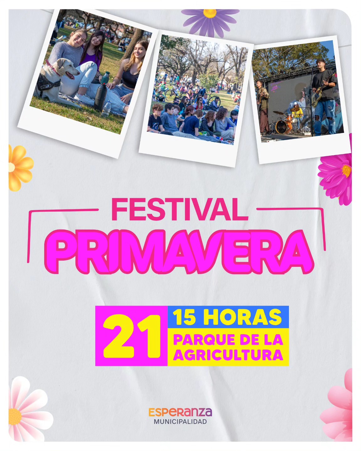 👉 15 a 18 h: “Festival Primavera”; música en vivo, artesanos, anticuarios y mucho más. Organiza: Secretaría de Cultura y Educación. En el Parque de la Agricultura. SUSPENDIDO POR CUESTIONES CLIMATICAS