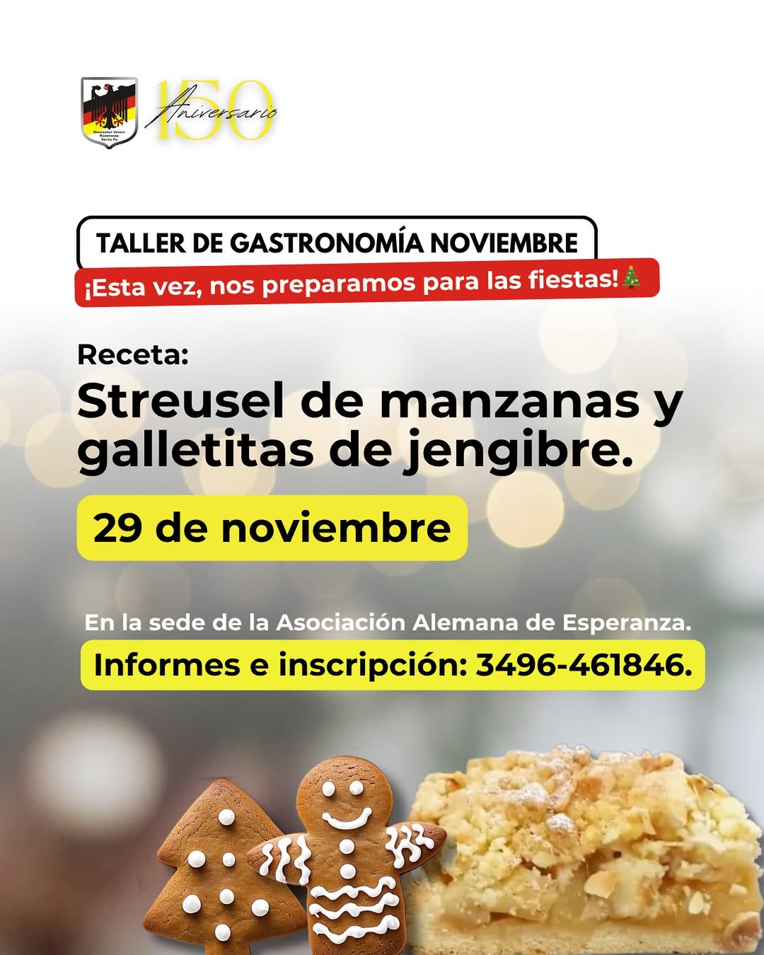 Taller de Gastronomía en la Asoc. Alemana Esperanza: ¡Recetas para las fiestas! Receta: streusel de manzanas y galletitas de jengibre […]