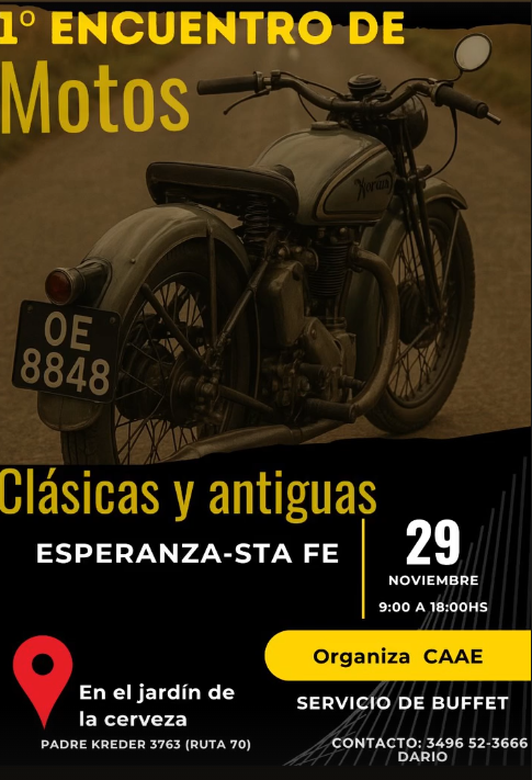 1º Encuentro de Motos Clásicas y Antiguas Organiza: CAAE Club Autos Antiguos y Especiales Habrá servicio de buffet 📅Sábado 29 […]