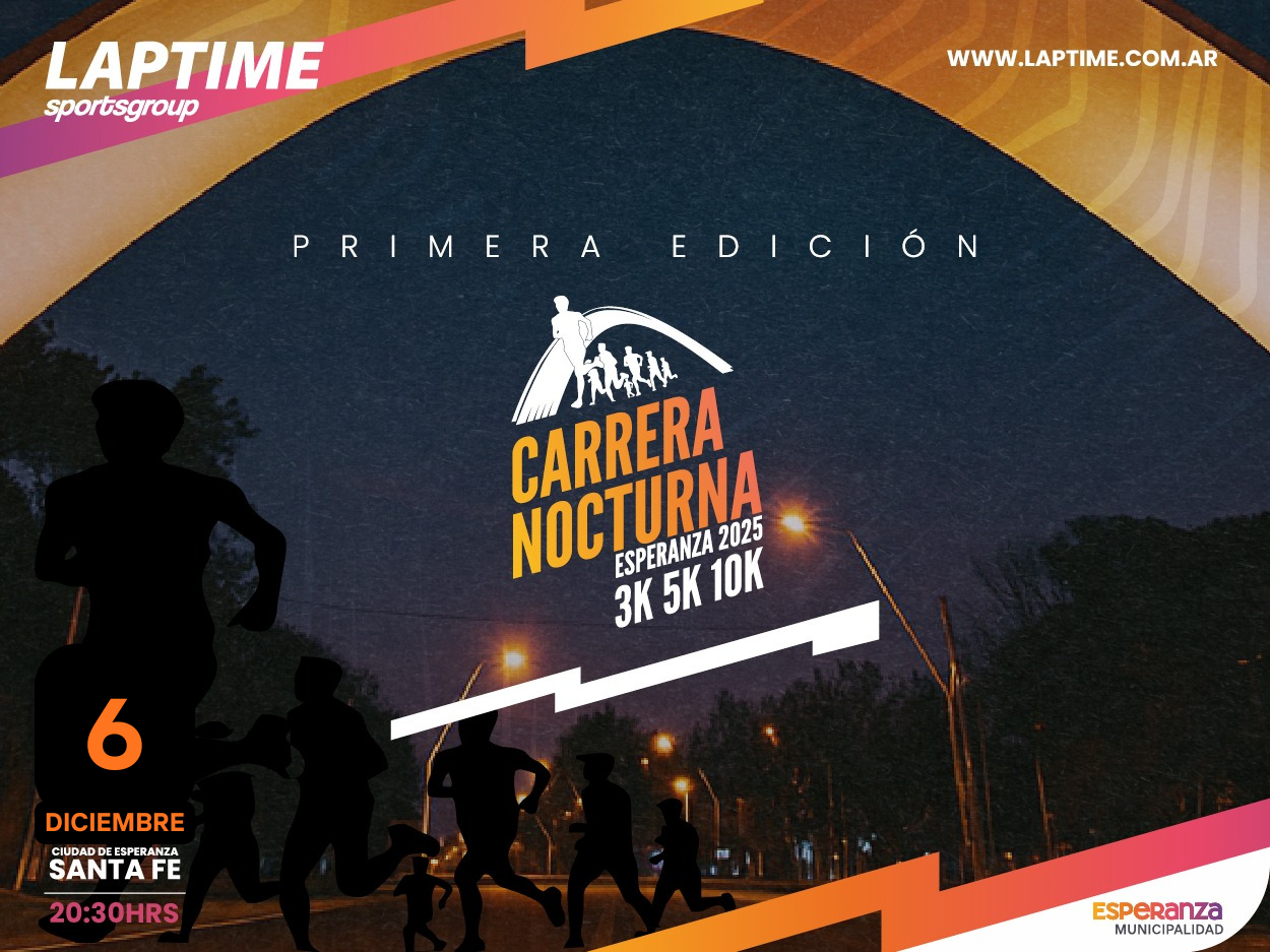 CARERRA NOCTURNA CIUDAD DE ESPERANZA 2025 📅Fecha reprogramada: 6/12/2025 ⏰Hora de largada: 20:30hs 📍Partida: Aarón Castellanos 1543 (Municipalidad de Esperanza) […] |