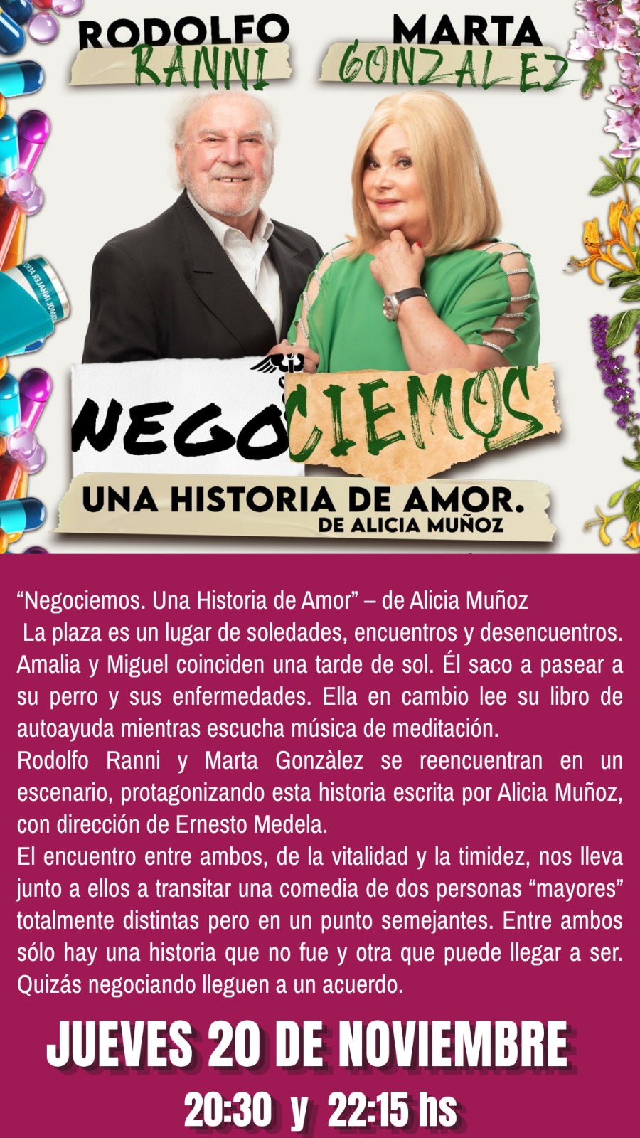 La Juana Sala Cultural presenta «Negociemos. Una historia de amor.», de Alicia Muñoz, con dirección de Ernesto Medela.