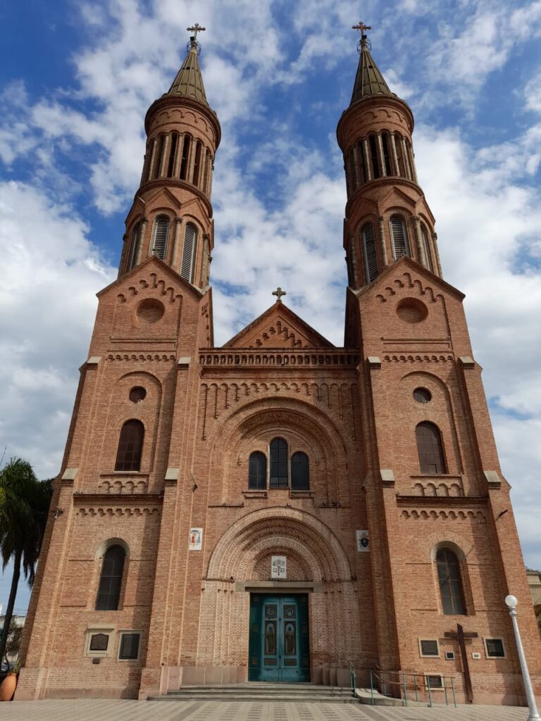Inicialmente le lugar de culto era un rancho de barro, los colonos construyen una capilla en 1863, y luego una iglesia con tres naves (1872-1874). La iglesia actual, emplazada en el mismo lugar, nace del sueño y del esfuerzo de la población católica; su piedra fundamental se coloca el 27 de Febrero de 1922, se inaugura en 1932, sus muros se elevan rodeando a la antigua iglesia, luego demolida. Esta obra puede identificarse con la arquitectura románica, de fuerte influencia germana. Se caracteriza principalmente por la solidez y sobriedad de sus líneas. La luz se filtra por los coloridos y figurativos vitrales de incalculable valor, elaborados por la casa Estruch de buenos Aires, invaluables por su estilo y calidad.