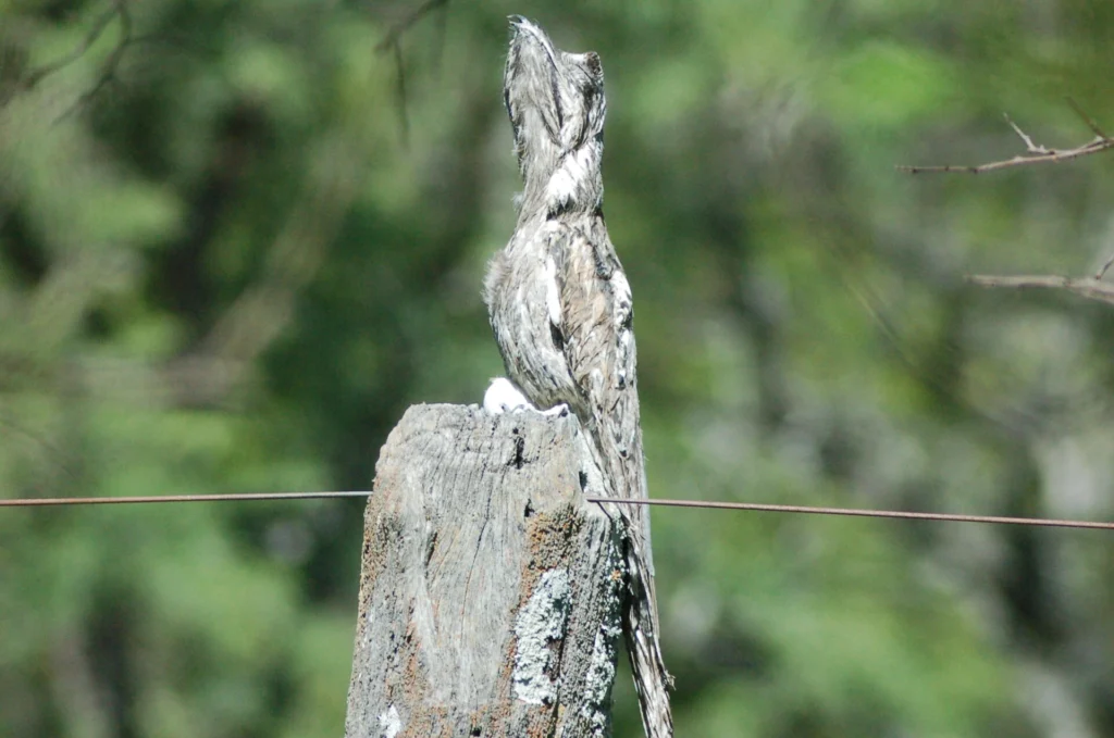 También llamada Ave palo, Kakuy, Vieja del monte, ente otros nombres populares. Posee ojos y boca relativamente grandes. Es insectívora y nocturna, sumamente inofensivo. Pasa el día posado erguida en un tronco de un árbol, con el cual se mimetiza como si fuera parte de él. Es una migradora estival, visita los montes de nuestra zona en verano, cuando viene a reproducirse.